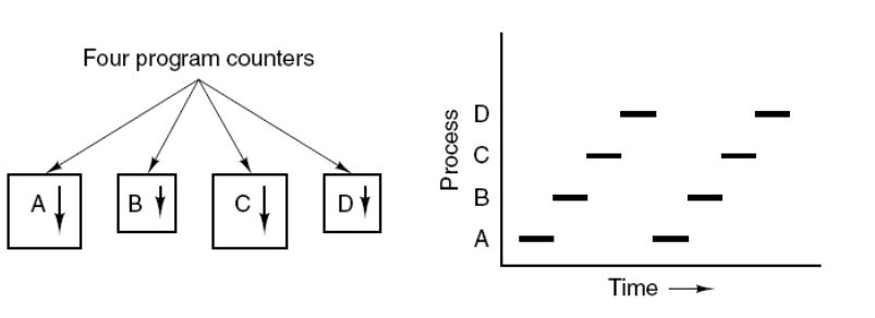 下图显示了 4 个程序创建了 4 个进程,这 4 个进程可以并发地执行。